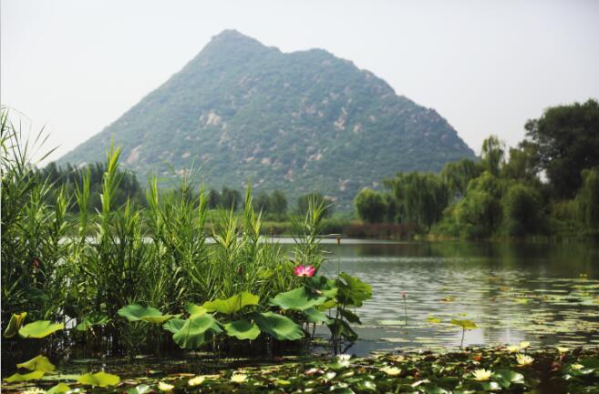 濟(jì)南華山又名華不(fū)注山,其名取自于《詩經(jīng)·小雅·常棣》,其詩曰:“常(棠)棣之華,鄂不??”。“華”即“花”,“鄂不”即“萼跗”,謂之花蒂。山名“華不注”,意為此山如花跗注于水中。經(jīng)過緊張的恢復(fù)整治,目前,“華不注”的山水勝景初現(xiàn),“水中起芙蓉”的旖旎景觀又一次展現(xiàn)在世人面前。