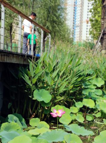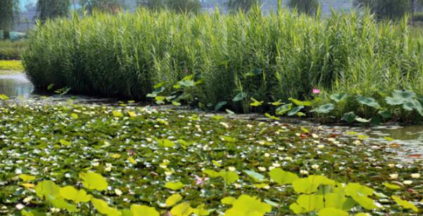 濕地園林一期景觀栽種了100多種植物,有旱柳、國槐等濟(jì)南本地樹種,還有荷花、蘆葦?shù)?0多種水生植物,良好的生態(tài)環(huán)境吸引了不少白鷺、??等鳥類棲息,“棹動芙蓉落,船移白鷺飛”。