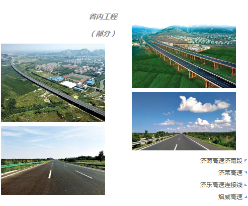 此外,還承建了濟(jì)青高速、濟(jì)聊高速、石黃高速、濟(jì)南繞城高速、濟(jì)菏高速、煙威高速以及海南海屯高速、深圳清平高速公路、山西廣渾高速、內(nèi)蒙國(guó)道110線等多條高速公路項(xiàng)目及省內(nèi)濟(jì)廣高速濟(jì)南連接線、大澗溝互通立交、段店立交橋、玫瑰湖大橋等的建設(shè)。