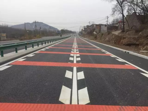 工程路線設(shè)計(jì)考慮人、車、路、環(huán)境四大要素,體現(xiàn)了以人為本的差異化設(shè)計(jì)理念。項(xiàng)目?jī)?yōu)化調(diào)整了路線指標(biāo),沿線除設(shè)置縱向振動(dòng)標(biāo)線外,橫向還設(shè)置了更加醒目的紅色振動(dòng)標(biāo)線,既提高了車輛行駛的安全性,又提升了標(biāo)線視覺上的警示功能。