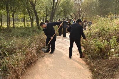 下午兩點所有辦公人員在廣場集合,集體坐電瓶車到海綿道路北美海棠路段進(jìn)行三公里長的義務(wù)勞動,一共40人左右分為男女兩組,分工明確的把道路兩側(cè)的雜草進(jìn)行鏟除和整理。