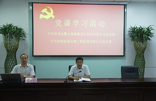 為進一步學習貫徹落實黨的十九大精神,深入領會山東省新舊動能轉換重大工程會議要求,激發(fā)廣大黨員干部新時代新?lián)斝伦鳛椋?018年5月25日下午,濟南金諾公路工程監(jiān)理有限公司黨支部、濟南金衢公路勘察設計研究有限公司黨支部組織全體黨員、中層及以上干部、積極分子五十余人在金衢公司第一會議室進行黨課學習。濟南金諾公司黨支部書記、董事長兼總經(jīng)理馮子強,濟南金衢公司黨支部書記、董事長兼總經(jīng)理張建等領導出席學習活動,會議由濟南金衢公司張建書記主持。