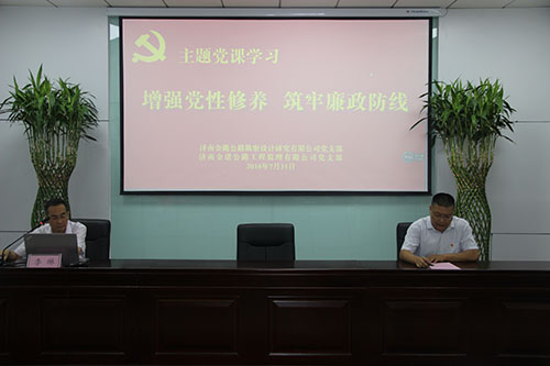 為深入學(xué)習(xí)貫徹習(xí)近平新時(shí)代中國(guó)特色社會(huì)主義思想,進(jìn)一步落實(shí)黨風(fēng)廉政建設(shè)主體責(zé)任,加強(qiáng)公司黨員干部反腐倡廉教育,筑牢黨員干部拒腐防變思想防線(xiàn),2018年7月31日下午,濟(jì)南金衢公路勘察設(shè)計(jì)研究有限公司黨支部、濟(jì)南金諾公路工程監(jiān)理有限公司黨支部組織全體黨員、中層及以上干部、積極分子五十余人在金衢公司第一會(huì)議室進(jìn)行黨課學(xué)習(xí)。濟(jì)南金諾公司黨支部書(shū)記、董事長(zhǎng)兼總經(jīng)理馮子強(qiáng),濟(jì)南金衢公司副總經(jīng)理余利軍等領(lǐng)導(dǎo)出席學(xué)習(xí)活動(dòng),會(huì)議由濟(jì)南金諾公司副總經(jīng)理兼黨支部紀(jì)檢委員宋海濤同志主持。