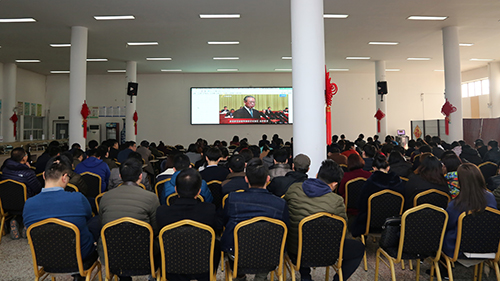按照市委市政府安排,集團(tuán)黨委書記、董事長(zhǎng)李國(guó)祥,黨委副書記、總經(jīng)理李培杰到設(shè)在龍奧大廈的市分會(huì)場(chǎng)收看了大會(huì)。集團(tuán)領(lǐng)導(dǎo)、各部室及子公司在崗人員分別在集團(tuán)東辦公區(qū)與西辦公區(qū)統(tǒng)一收看了大會(huì)。各項(xiàng)目部和部分子公司也自行組織干部職工進(jìn)行了統(tǒng)一收看。
