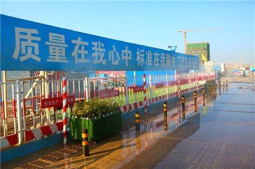 在有序推進(jìn)建設(shè)進(jìn)度的基礎(chǔ)上,項(xiàng)目施工中嚴(yán)格遵守?fù)P塵污染治理和安全生產(chǎn)的相關(guān)規(guī)定措施,對(duì)存在的不足和問題快速?gòu)氐渍牡轿唬J(rèn)真落實(shí)市委市政府建設(shè)工程揚(yáng)塵污染治理“四個(gè)一律”和“六個(gè)百分之百”工作要求,采取在施工現(xiàn)場(chǎng)配備霧炮機(jī)進(jìn)行濕法作業(yè),施工現(xiàn)場(chǎng)道路及材料堆放場(chǎng)地鋪混凝土路面或鋼板路面進(jìn)行硬化處理,安裝智能化揚(yáng)塵檢測(cè)系統(tǒng)及綠網(wǎng)覆蓋等措施,確保各個(gè)階段揚(yáng)塵防治工作萬無一失。