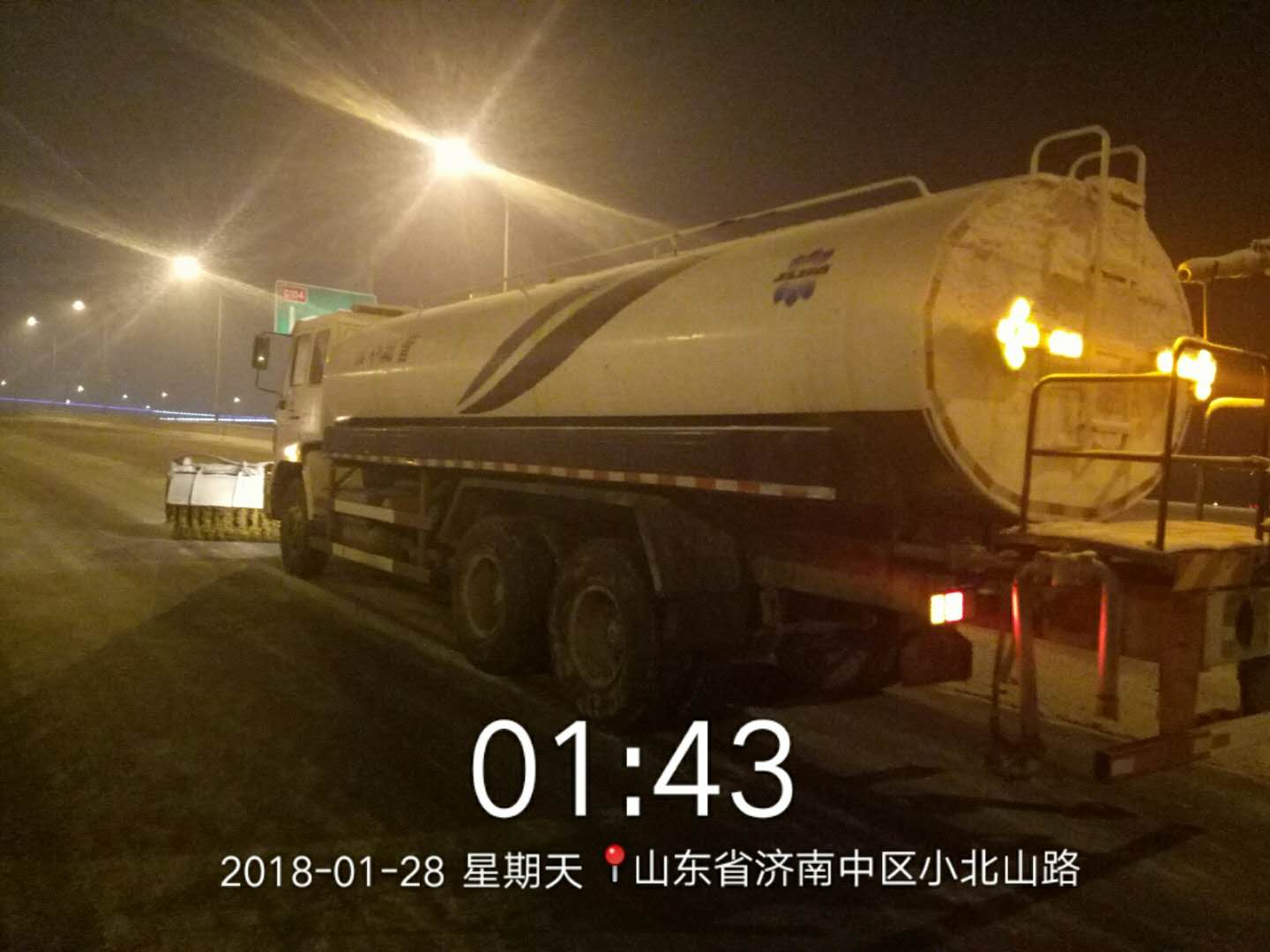 1月27日,受冷空氣影響,濟(jì)南市區(qū)大范圍降雪,為避免雨雪極端天氣對(duì)高架交通通行造成影響,按照《濟(jì)南市人民政府辦公廳關(guān)于做好冰雪和強(qiáng)降溫天氣防范應(yīng)對(duì)工作的緊急通知》的要求,濟(jì)南市政公用資產(chǎn)管理運(yùn)營有限公司子公司濟(jì)南泉澤建設(shè)管理運(yùn)營有限公司按照"提前預(yù)防、充分準(zhǔn)備、快速反應(yīng)、協(xié)調(diào)聯(lián)動(dòng)"的原則,啟動(dòng)雨雪天氣應(yīng)急機(jī)制。二環(huán)西南延高架運(yùn)營維護(hù)小組立即出動(dòng),調(diào)動(dòng)保潔分包單位開展鏟雪除冰、路面融雪等應(yīng)急處置工作。