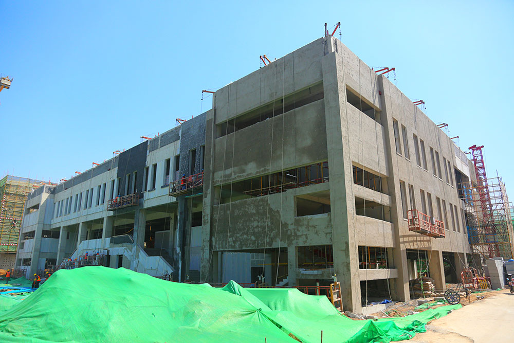 由濟南城市建設(shè)集團代建的濟南市大學(xué)城實驗學(xué)校,自2017年10月31日正式開工以來,建設(shè)方與各施工監(jiān)理單位以“白加黑、5+2”工作節(jié)奏,全面有序推進工程建設(shè)。前期,經(jīng)過“大干40天,確保春節(jié)前封頂”的強力推進,目前項目所有主要單體主體結(jié)構(gòu)全部封頂。目前,項目已進入裝修裝飾工作的全力沖刺階段,“大干100天,確保完美履約”,保證項目今年6月30日竣工,9月1日達到開學(xué)條件。