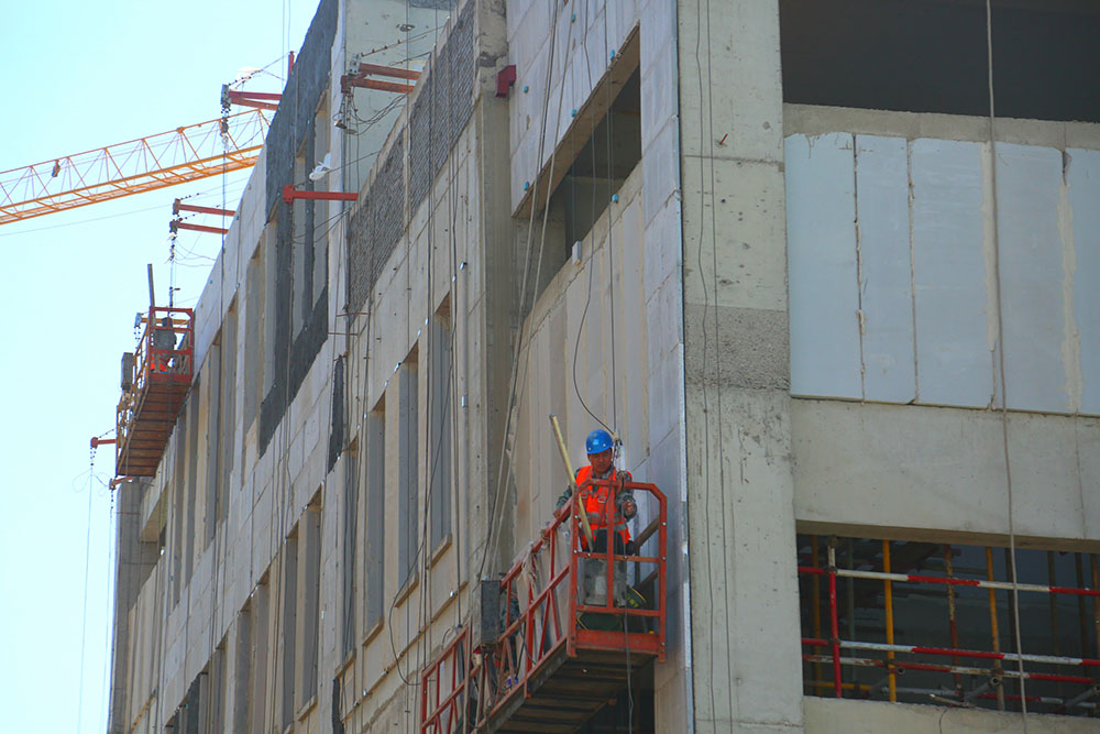 作為墻體的維護結(jié)構(gòu)工作,內(nèi)外墻二次結(jié)構(gòu)施工是建筑主體結(jié)構(gòu)封頂后的延續(xù)工作。目前,項目內(nèi)、外墻等二次結(jié)構(gòu)已接近尾聲,屋面防水也已完成大半,以上兩項工作預(yù)計4月底可完成。