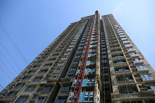 目前,吳家堡安置房一期工程全部17棟單體結構及二次結構已經完成,17棟樓的屋面防水、室內抹灰也已完成,正在進行室內瓷磚鑲貼、混凝土地面及外墻抹灰施工,鋁合金窗安裝已完成70%,電梯的安裝已全面展開。在配套方面,裙房及商業(yè)結構、車庫頂板防水均已完成,室外回填土已完成70%,園林綠化施工單位已進場。