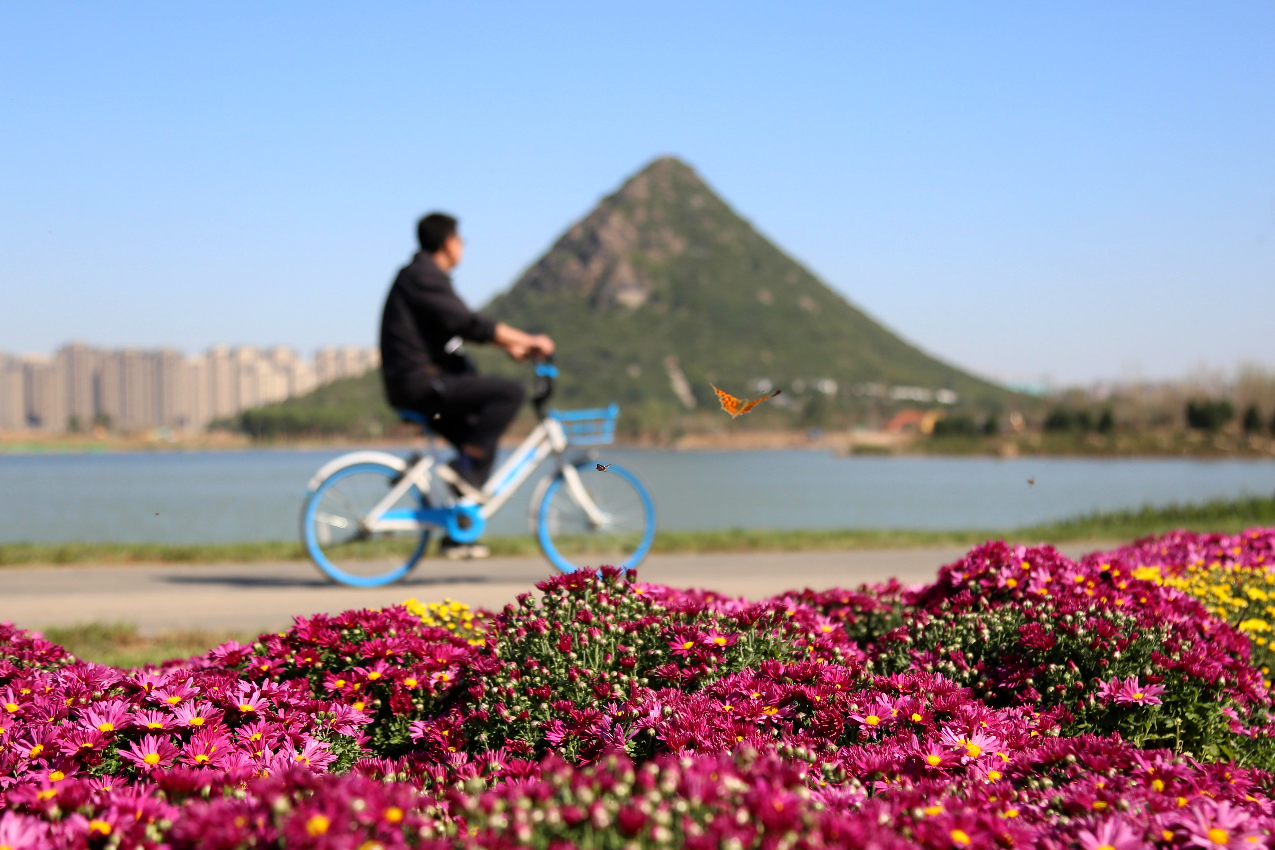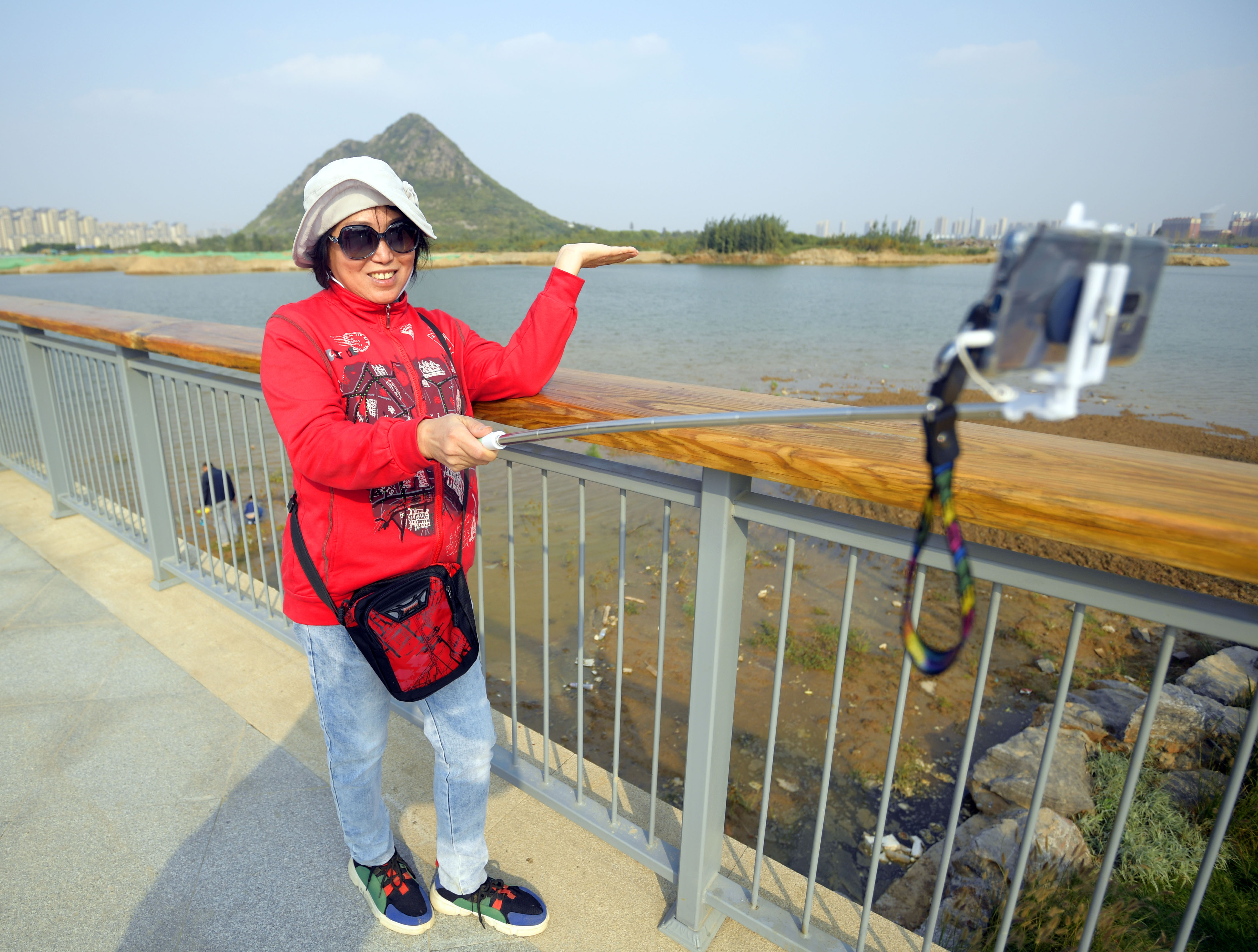沿著環(huán)湖步道興之所至,湛藍(lán)的天空下,波光粼粼的湖面,生機(jī)盎然的草木,與平地高聳的華不注交相輝映,放眼四顧,山光水色盡收眼底,“特別美”。