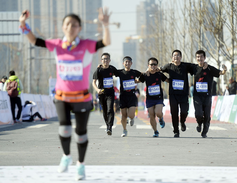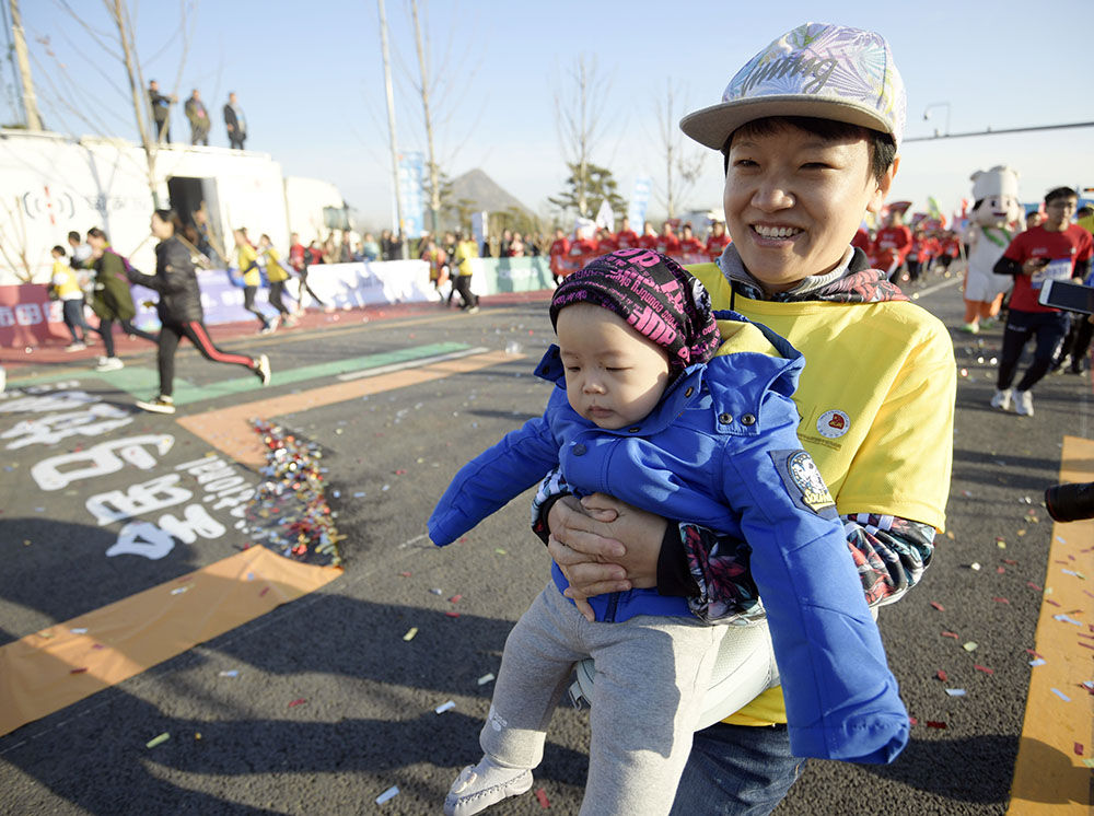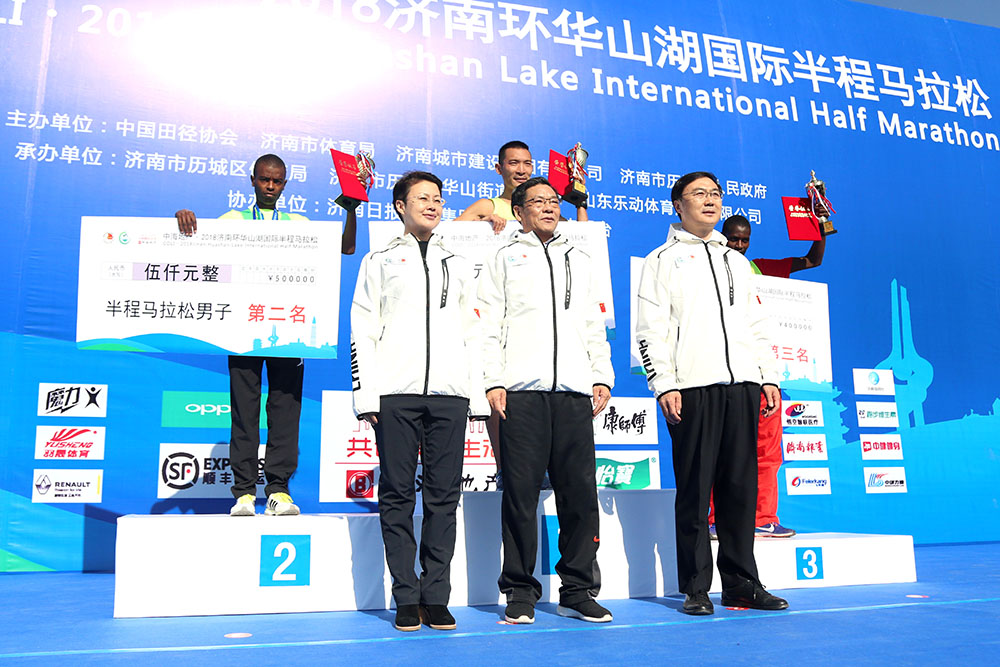 經(jīng)過激烈角逐,男子組前三名分別由棗莊選手李子成和兩名肯尼亞選手獲得,女子組前三名分別由遼寧選手王佳偉和兩名濟南選手獲得。除了半程馬拉松,賽事還設(shè)置了迷你馬拉松(5公里)以及家庭親子跑,大家共享了運動的快樂。來自國內(nèi)外的5000余名跑馬愛好者在華山湖畔用腳步丈量華山生態(tài)人文新城,感受“齊煙九點”和“鵲華煙雨”的魅力。