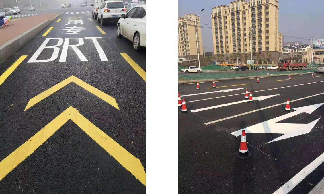 雙組份高亮標線涂料的主要原料是 “甲基丙烯酸甲酯”(英文縮寫MMA),此次路面標線施劃的標線涂料全部采用MMA雙組份,具體施工內容為MMA雙組份標線(刮涂)6100㎡、MMA雙組份標線(甩涂)4300㎡、MMA雙組份標線(噴涂)2200㎡。