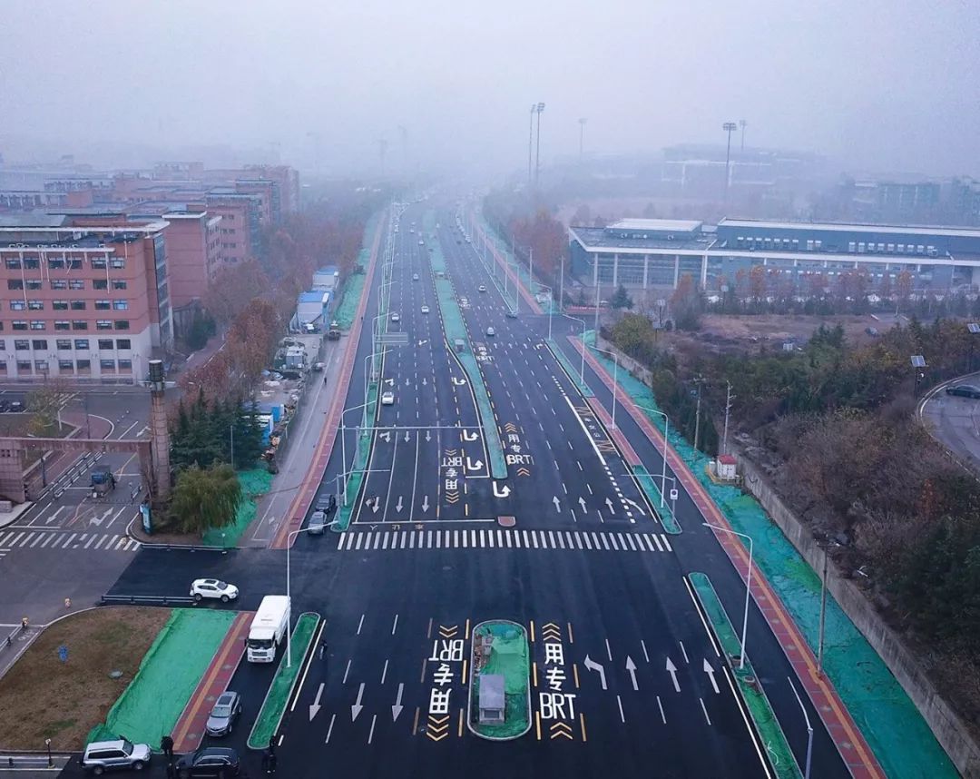 作為濟南市2018年要打通的28條瓶頸路之一,鳳鳴路12月2日正式建成通車,成為東部城區(qū)南北大通道之一,極大解決了東部出行問題。濟南城市建設集團所屬濟南金宇公路產業(yè)發(fā)展有限公司負責經十路鳳鳴路路口至工業(yè)北路鳳鳴路路口路面標線施劃,采用安全系數(shù)強且環(huán)保的新型雙組份材料對該路段進行施工,讓生命更安全,讓濟南天更藍!
