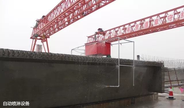 工程采取了多項科技創(chuàng)新技術,全程自動噴淋作業(yè),電磁閥控制自動噴淋設備,可扇形噴霧,達到全天候、全濕潤、無遺漏養(yǎng)生標準,養(yǎng)生效果極為顯著。