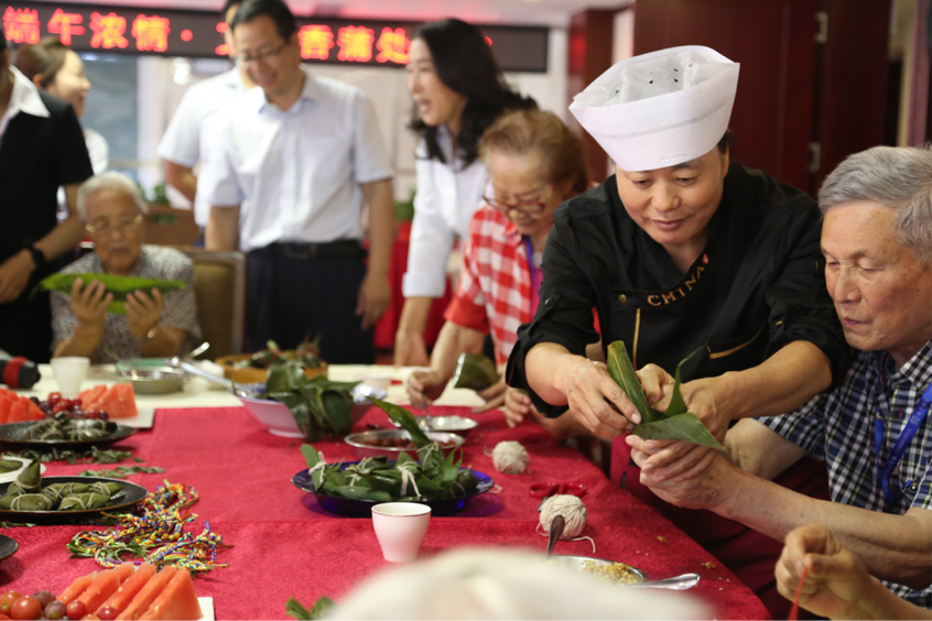 在一同欣賞了廚師的精彩表演后,所有人一同投入到了火熱的包粽子環(huán)節(jié)中。劉開慶說:“從來都是吃包好了的粽子,做好的飯,這次啊,也讓我們自己動手做給大家吃!”