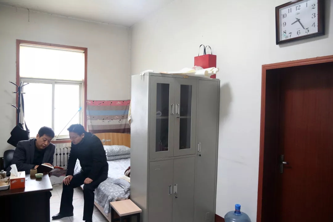 8:25這處不到20平米的房間,是張慶紅在新市鎮(zhèn)的辦公室兼臥室。早飯過(guò)后,張慶紅與管區(qū)(鎮(zhèn)與村之間的行政機(jī)構(gòu))書(shū)記尹玉吉溝通交流近期的工作。“張書(shū)記事必躬行,村里很多工作都親自抓、扎實(shí)干,路樓村這幾年取得的成績(jī),大家有目共睹”,尹玉吉說(shuō)道。