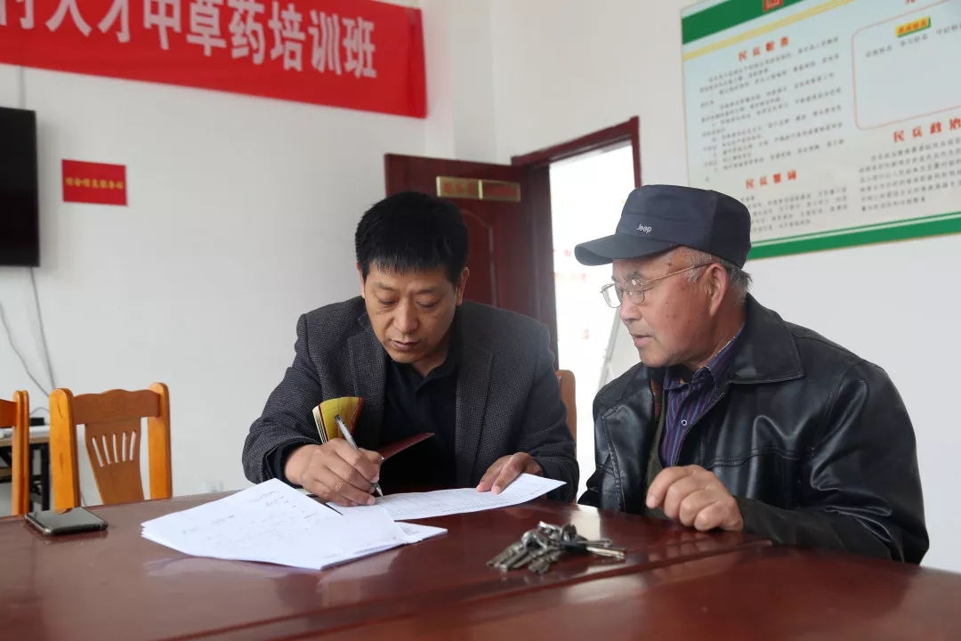 到村后,張慶紅首先與村委會(huì)副主任路傳童對(duì)接了農(nóng)田灌溉機(jī)井安裝電表及貧困戶(hù)安置房維修事宜。
