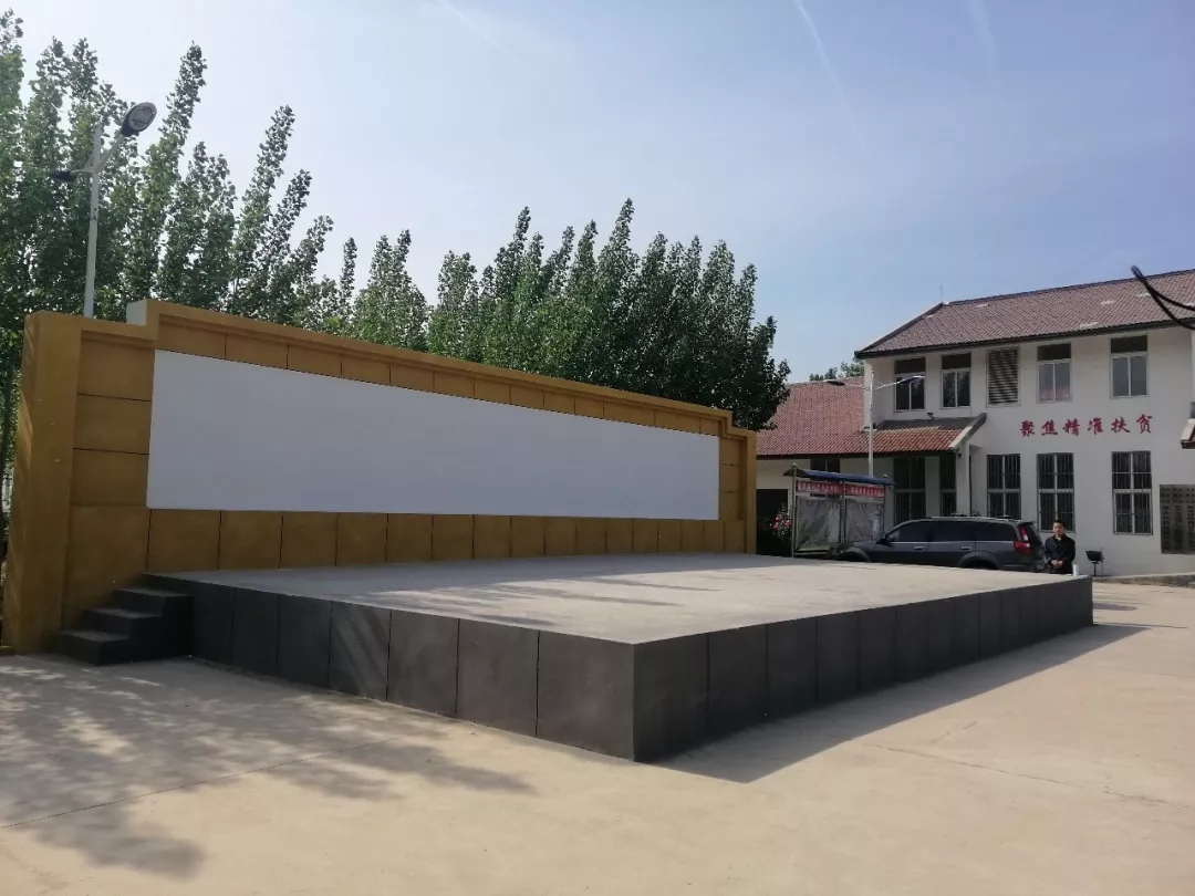 村委會(huì)辦公樓前,新建成的鄉(xiāng)村大舞臺(tái)即將投入使用。除了脫貧致富提升村民物質(zhì)生活水平,張慶紅還積極協(xié)調(diào)各種資源,不斷努力提升村民精神文化生活水平。近年來(lái),村里通過(guò)墻繪、宣傳板等宣傳孝道,評(píng)比“文明家庭”“好婆婆”“好媳婦”等,并成立紅白理事會(huì),倡導(dǎo)文明、節(jié)儉新風(fēng)。同時(shí),在集團(tuán)和各相關(guān)單位大力支持下,先后開(kāi)展“一元愛(ài)”、“金暉助老”、公益崗、留守兒童支教、扶貧公益晚會(huì)、送戲下鄉(xiāng)等系列活動(dòng)。