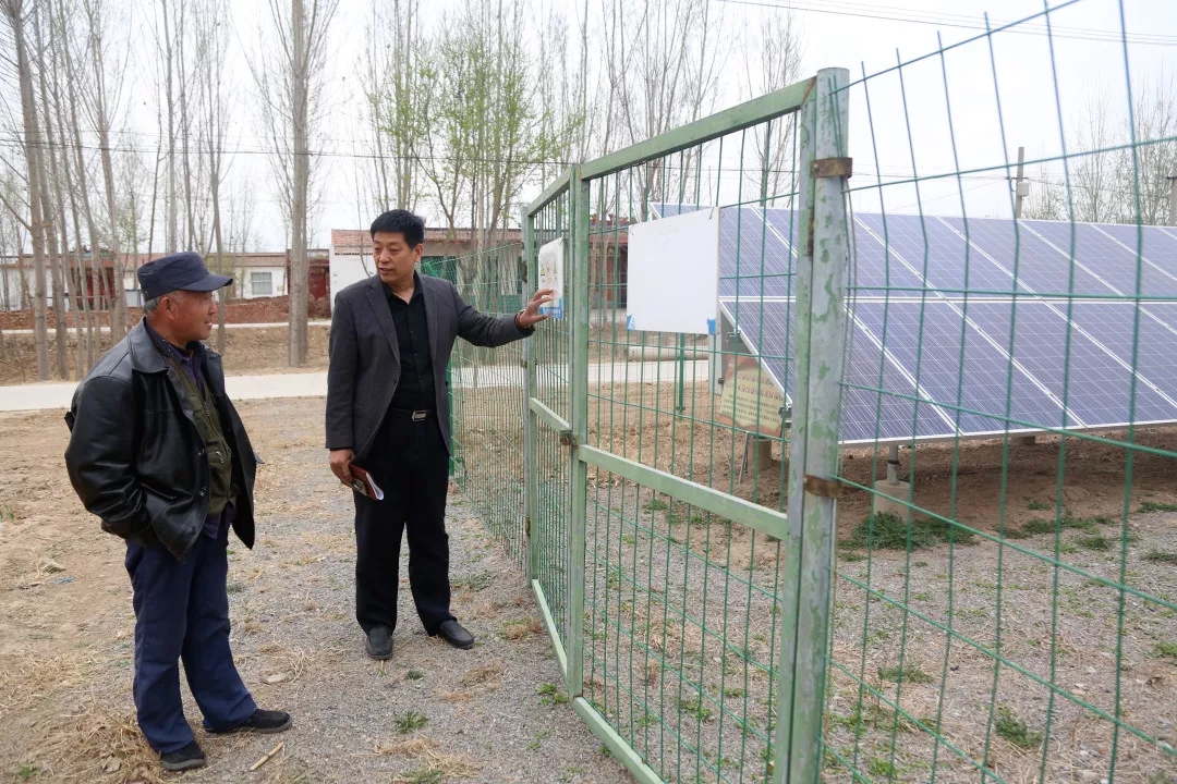 走訪(fǎng)途中,張慶紅察看光伏發(fā)電項(xiàng)目的維護(hù)使用情況。路樓村經(jīng)濟(jì)發(fā)展后勁不足,經(jīng)過(guò)多方調(diào)研、論證,該村引進(jìn)光伏發(fā)電項(xiàng)目。目前,光伏發(fā)電已成為農(nóng)民增收、貧困戶(hù)脫貧的新抓手。