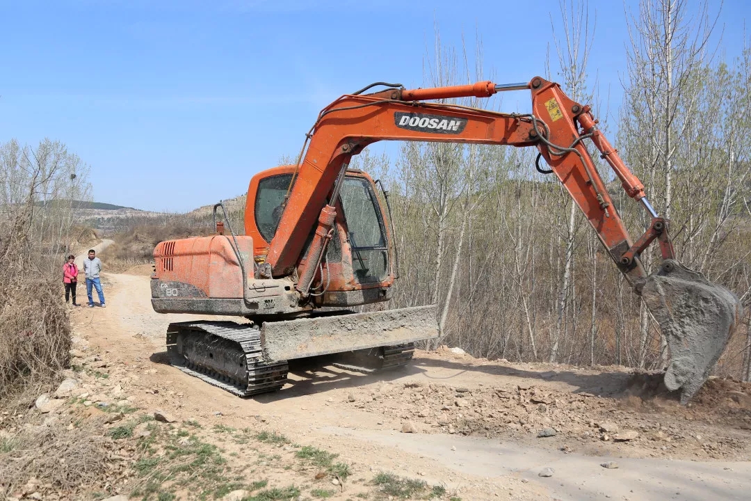 11:20王棟棟和任書記在生產(chǎn)路整修現(xiàn)場。村北側(cè)的生產(chǎn)路是連通大黃崖村與農(nóng)田果園的道路,也是通往鄰村陶裕村最便捷的道路。去年受大雨影響,道路嚴(yán)重受損,隨時(shí)有塌陷的危險(xiǎn),給群眾生產(chǎn)生活帶來諸多不便。他帶領(lǐng)村兩委和部分黨員群眾,利用三天時(shí)間對(duì)道路進(jìn)行了修復(fù),搶修出了一條臨時(shí)通道。要徹底解決道路塌陷問題,就一定要重新翻修,日前,他從縣交通部門爭取的資金已經(jīng)到位,施工隊(duì)伍已進(jìn)場施工,目前正處于找平碾壓過程中,很快就將進(jìn)行道路硬化,一周時(shí)間即可恢復(fù)通行。