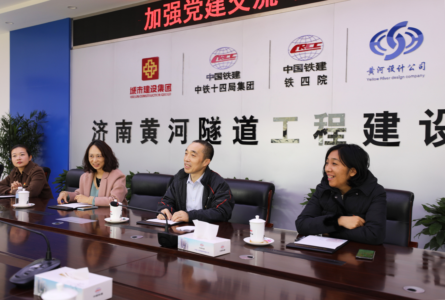 全體人員隨后又來(lái)到濟(jì)南黃河隧道項(xiàng)目部。支部與城隧公司黨支部書記、執(zhí)行董事張健及項(xiàng)目工作人員進(jìn)行了座談,雙方著重對(duì)支部目前的工作情況以及今后交流共建形式進(jìn)行了交流探討。張健部長(zhǎng)介紹了穿黃隧道工程項(xiàng)目的進(jìn)展情況,范總對(duì)集團(tuán)目前投融資工作也進(jìn)行簡(jiǎn)要介紹,投融資部的全體人員也參與了交流并表示,在今后的工作中要繼續(xù)積極地配合,做好資金支持與服務(wù)工作。