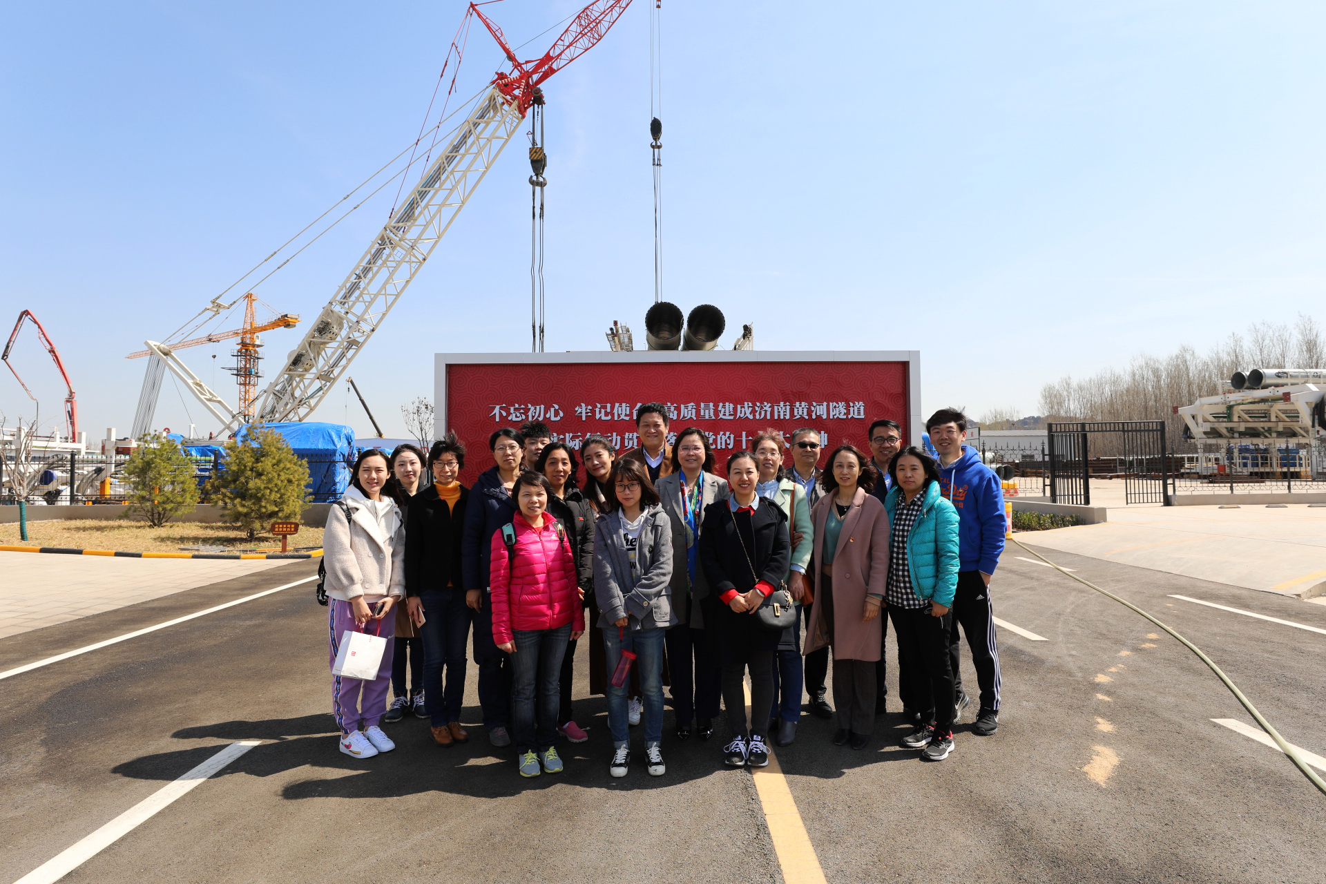 隨后,項(xiàng)目人員帶領(lǐng)參觀了濟(jì)南黃河隧道智慧工程指揮中心,全方位、立體地了解“三橋一隧一高速”工程情況并實(shí)地參觀了施工現(xiàn)場(chǎng)以及挖掘隧道必不可少的設(shè)備——盾構(gòu)機(jī),設(shè)備的龐大、精密、先進(jìn)、自動(dòng)化程度,令人驚嘆;工程的壯觀和艱巨讓人震撼。大家紛紛贊嘆,濟(jì)南黃河隧道工程不愧是世界級(jí)的、目前國(guó)內(nèi)在建最大直徑的盾構(gòu)隧道工程,名副其實(shí)的 “萬(wàn)里黃河第一隧”。