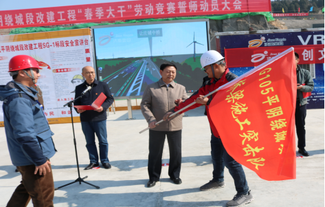 會(huì)上,濟(jì)南市公路管理局項(xiàng)目管理中心曹磊宣讀2019年“春季大干”勞動(dòng)競(jìng)賽活動(dòng)實(shí)施方案;各參建單位項(xiàng)目負(fù)責(zé)人簽訂目標(biāo)責(zé)任狀并作表態(tài)發(fā)言;濟(jì)南市公路管理局郭宗杰副局長(zhǎng)向各施工單位、監(jiān)理單位授勞動(dòng)競(jìng)賽突擊隊(duì)隊(duì)旗,展示勞動(dòng)競(jìng)賽流動(dòng)紅旗并講話。