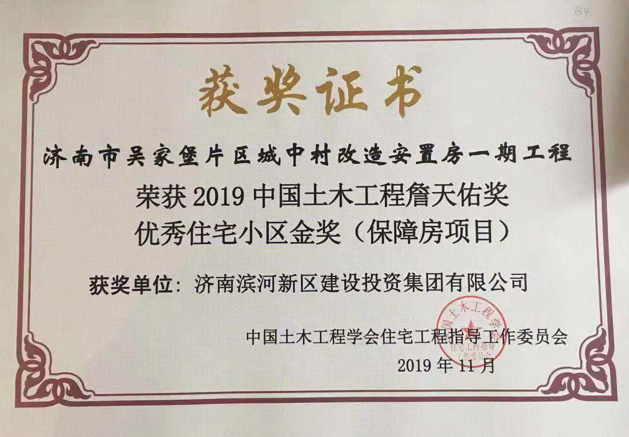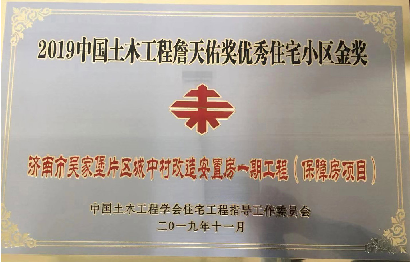 弘揚工匠精神,打造精品工程。作為濟(jì)南市第一個多村整合的城中村改造項目,近日,由濟(jì)南城市建設(shè)集團(tuán)負(fù)責(zé)建設(shè)的吳家堡片區(qū)城中村改造安置房一期工程(以下簡稱吳家堡安置房一期)榮獲2019中國土木工程詹天佑獎優(yōu)秀住宅小區(qū)金獎。