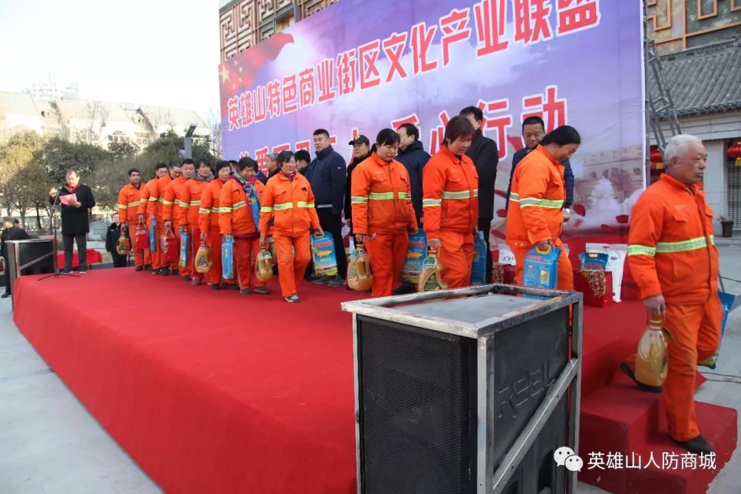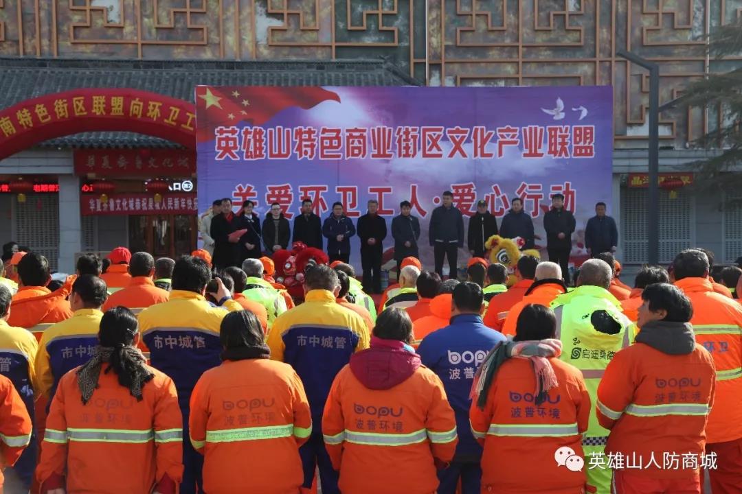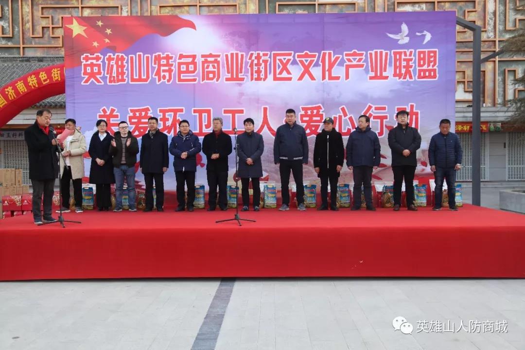 2019年2月1日,農(nóng)歷臘月二十七,濟(jì)南市英雄山人防工程管理有限責(zé)任公司作為英雄山特色商業(yè)街區(qū)文化產(chǎn)業(yè)聯(lián)盟成員單位,與多家聯(lián)盟單位聯(lián)合發(fā)起了中國(guó)濟(jì)南特色街區(qū)聯(lián)盟“關(guān)愛環(huán)衛(wèi)工人,愛心行動(dòng)”主題公益活動(dòng),為服務(wù)于街區(qū)的環(huán)衛(wèi)工人們獻(xiàn)上節(jié)日的祝福,并送上了個(gè)人捐款與農(nóng)副產(chǎn)品。市中區(qū)副區(qū)長(zhǎng)潘建軍、四里村街道辦事主任崔珉受邀參加了本次活動(dòng)。