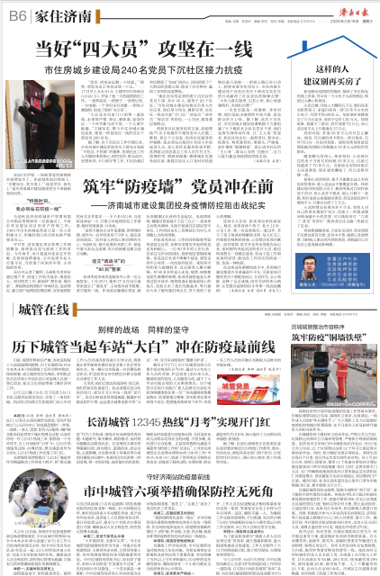 2020年伊始,一場新型冠狀病毒肺炎疫情發(fā)生了。在戰(zhàn)疫的前沿陣地上,“關(guān)鍵崗位,黨員頂上”“我是黨員,我先上”成為濟(jì)南城市建設(shè)集團(tuán)黨員干部最響亮的回答。