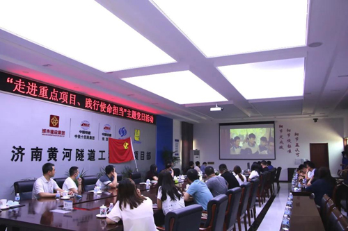 在濟(jì)南黃河隧道,支部成員參觀了濟(jì)南黃河隧道智慧工程指揮中心及大盾構(gòu)施工現(xiàn)場,了解了黃河隧道設(shè)計原理和掘進(jìn)技術(shù),感受了現(xiàn)代化、信息化、智能化建設(shè)現(xiàn)場的魅力和震撼。
