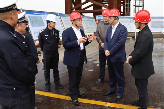 在主橋施工現(xiàn)場(chǎng),工作組認(rèn)真聽(tīng)取了齊魯黃河大橋工程建設(shè)等有關(guān)情況的匯報(bào),并詳細(xì)了解了主橋梁板架設(shè)、施工中存在的問(wèn)題難題和建設(shè)工期安排。曹鳳陽(yáng)表示,此次“萬(wàn)警進(jìn)萬(wàn)企”活動(dòng)緊緊圍繞市委政法委部署要求,堅(jiān)持“主動(dòng)聯(lián)系企業(yè)、主動(dòng)服務(wù)企業(yè)、主動(dòng)保護(hù)企業(yè)”原則,及時(shí)了解企業(yè)需求,響應(yīng)企業(yè)訴求,努力為企業(yè)辦實(shí)事、做好事、解難事,建立常態(tài)化聯(lián)系溝通機(jī)制,助力企業(yè)健康發(fā)展、高質(zhì)量發(fā)展。他指出,齊魯黃河大橋的順利建成將極大推動(dòng)槐蔭和齊河兩地旅游業(yè)和經(jīng)濟(jì)社會(huì)互動(dòng)發(fā)展,為建設(shè)“大強(qiáng)美富通”現(xiàn)代化國(guó)際大都市作出新的更大貢獻(xiàn)。