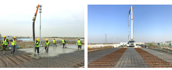 該標段全線10kV以上高壓線共計15條影響主線2400米施工,項目部多措并舉順利攻克難關(guān),大力推進施工進展。自項目開工以來,北岸引橋4#墩一直受上空高壓電纜制約施工,項目部多次勘探現(xiàn)場,編制專項施工方案。樁基鉆孔采用循環(huán)鉆開挖,為避免觸電危險的發(fā)生,設(shè)備上方鋪蓋絕緣板后施工;扣除吊裝高度,樁基鋼筋籠全部采用2米一段,于鉆孔內(nèi)進行連接拼裝;線改后為了迅速形成強度,4#墩下部結(jié)構(gòu)混凝土強度標號提升至C40。