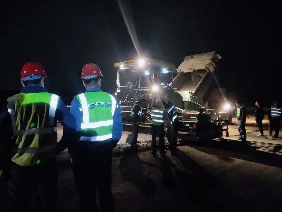 春節(jié)期間,預(yù)制梁也從未間斷生產(chǎn),為保證預(yù)制梁生產(chǎn)架設(shè)工作,綜合場站內(nèi)管理人員與工人共計20余人,始終堅守崗位,并組織成立青年突擊隊,進行交通導(dǎo)改、箱梁架設(shè),順利跨越青銀高速(青島至銀川方向)。全面復(fù)工后,項目生產(chǎn)、防疫兩手抓,為降低傳播風險,根據(jù)實際情況進行分散施工,陸續(xù)在工地上開展了預(yù)制梁澆筑、架設(shè)、路基翻曬碾壓、橋面鑿毛、現(xiàn)澆梁施工、場地硬化等多個作業(yè)面。