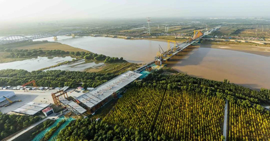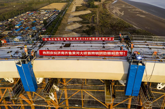 繼濟樂高速南延線順利通車、鳳凰黃河大橋主橋合龍后,由濟南城市建設(shè)集團負責建設(shè)管理的跨黃通道工程又迎來重要節(jié)點,經(jīng)過90天的連續(xù)作業(yè),10月21日凌晨,齊魯黃河大橋首跨拱肋順利合龍。隨著最后一節(jié)段拱肋的精準安裝到位,項目建設(shè)再次取得重要節(jié)點性進展。