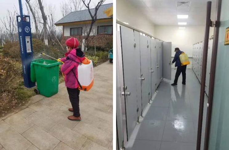 各標(biāo)段均安排專人做為防疫專員,對所有進入建筑工地的人員進行體溫檢測,逐一記錄并做好統(tǒng)計,嚴(yán)控各標(biāo)段務(wù)工人員返崗,對景區(qū)衛(wèi)生間、垃圾箱、座椅等易污染設(shè)施嚴(yán)格實行不低于每日四次的噴灑消殺藥劑措施。