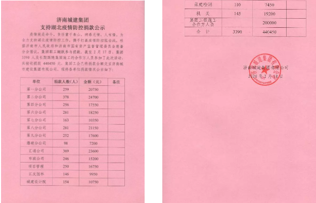 一方有難,八方支援。城建集團采取網(wǎng)絡捐款的形式有序組織活動,減少人員聚集,廣大黨員干部職工第一時間響應活動號召,紛紛伸出援助之手,一筆筆“愛心捐款”迅速匯集到集團捐款專用賬戶,最終共有3390人參加捐款活動,捐款總額為440450元。全體干部職工紛紛表示:城建人從不怕打硬仗,抗擊疫情,責無旁貸,堅決打贏疫情防控阻擊戰(zhàn)。跟隨城建集團南征北戰(zhàn)的配屬隊伍,長期受優(yōu)秀企業(yè)文化的熏陶,早已融入我們這個“城建大家庭”,當聞知集團開展愛心捐款活動后,主動請求參加捐款活動,緊跟集團積極履行社會責任。