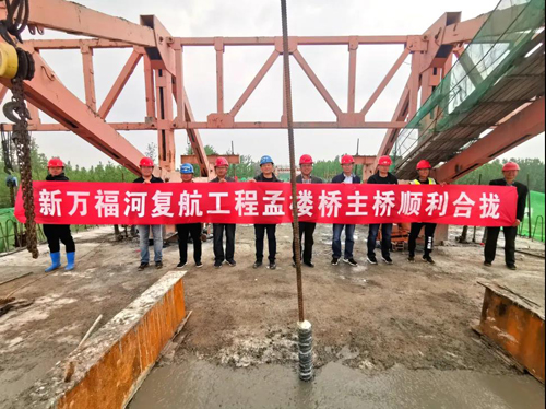 4月19日,隨著最后一方混凝土澆筑完成,經(jīng)過10個月的建設,濟寧金鄉(xiāng)新萬福河復航工程孟樓橋懸臂現(xiàn)澆箱梁順利合攏。