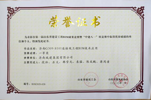 城建集團(tuán)作品榮獲山東省建筑業(yè)協(xié)會(huì)第一屆建設(shè)工程BIM成果競(jìng)賽一等獎(jiǎng)
