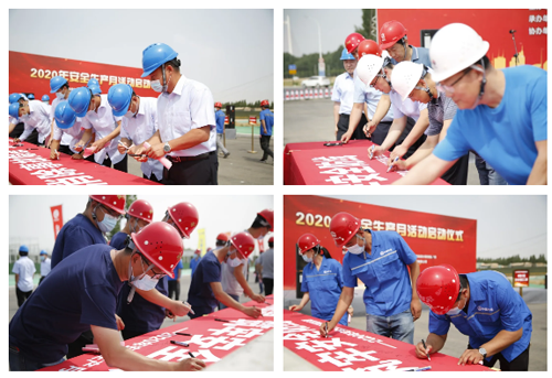 儀式結(jié)束后,參加儀式的全體人員在印有“消除事故隱患,筑牢安全防線”安全主題條幅上進(jìn)行簽名。