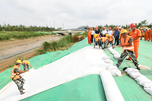 為進(jìn)一步檢驗(yàn)防汛應(yīng)急預(yù)案的科學(xué)性、有效性和可操作性,提高應(yīng)急反應(yīng)和防汛搶險(xiǎn)能力,6月24日上午,城建集團(tuán)在龍脊河項(xiàng)目施工現(xiàn)場(chǎng)舉行“濟(jì)南城建集團(tuán)2020年防汛應(yīng)急演練”。山東省應(yīng)急管理廳防汛抗旱處處長(zhǎng)王秀中,濟(jì)南市應(yīng)急管理局副局長(zhǎng)魏強(qiáng)、黨組成員李學(xué)軍、防汛抗旱處處長(zhǎng)周凱、科長(zhǎng)楊志斌,城建集團(tuán)總經(jīng)理牟曉巖,副總經(jīng)理呂守明、馬烽及分(子)公司經(jīng)理、安全分管經(jīng)理等150余人參加了演練活動(dòng)。