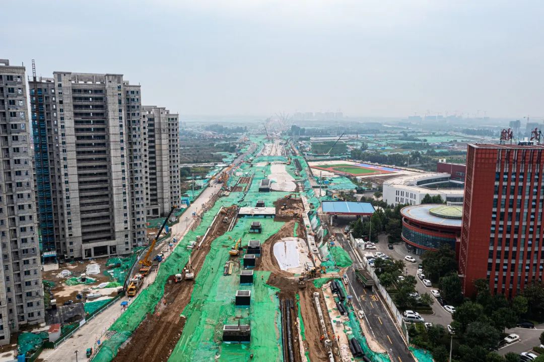 黃河大道自大橋組團(tuán)西邊界向北延伸,一直到孫耿北路,全長(zhǎng)21.8km,建成后的黃河大道將3大組團(tuán)、5處重點(diǎn)片區(qū),銜接10條過(guò)黃通道(包括規(guī)劃建設(shè))。濟(jì)南城建集團(tuán)承建一期工程第三標(biāo)段建設(shè),全長(zhǎng)約3.5公里,其中通道長(zhǎng)度2.34km,施工內(nèi)容包括會(huì)展中心通道及配套建筑、地面道路、慢行通道、排水、再生水、綜合管線、人行天橋、照明、交通等。