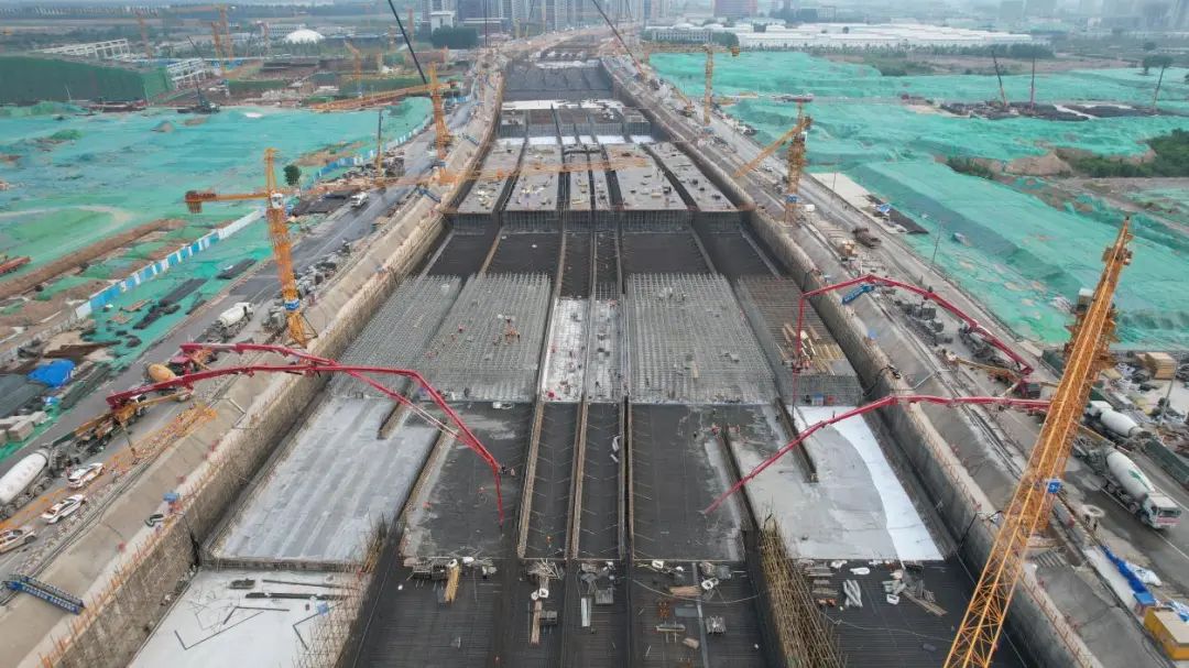 工程開(kāi)工建設(shè)以來(lái),五個(gè)工區(qū)同步平行施工,24小時(shí)飽和施工,加大人力、機(jī)械投入,高峰期間三千余人同步會(huì)戰(zhàn),保障工程有序推進(jìn)。施工過(guò)程中,在嚴(yán)格執(zhí)行環(huán)保標(biāo)準(zhǔn)的前提下,利用兩個(gè)月的時(shí)間完成160萬(wàn)立方米的通道基坑土方開(kāi)挖,相當(dāng)于開(kāi)挖兩個(gè)大明湖的方量。完成鋼筋制作安裝8.6萬(wàn)噸,澆筑混凝土43.9萬(wàn)立方米,地面道路水穩(wěn)18萬(wàn)噸,瀝青12萬(wàn)噸。