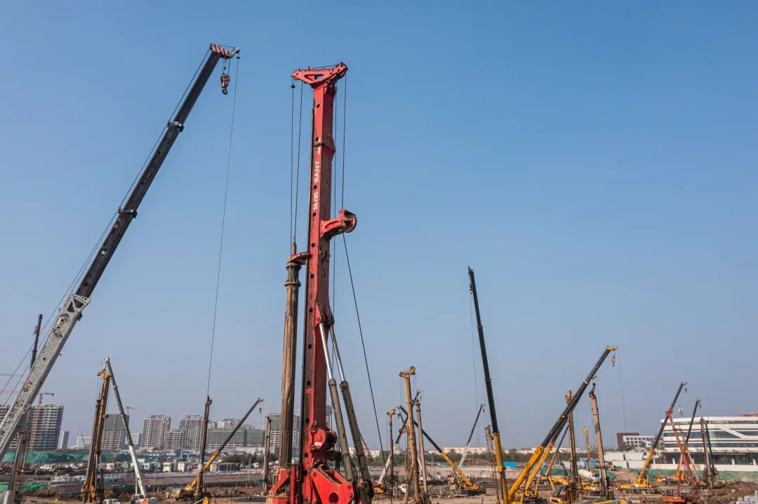 樁基施工準(zhǔn)備階段,根據(jù)項(xiàng)目情況優(yōu)化編制基礎(chǔ)工程施工組織方案,制定樁基施工布置圖,按基樁類型、特點(diǎn)劃分9個(gè)施工區(qū)域,明確基樁編號(hào)、施工順序、基樁檢測(cè)等策劃內(nèi)容,有效串聯(lián)設(shè)計(jì)、施工、監(jiān)理、檢測(cè)、驗(yàn)收等環(huán)節(jié)。在3萬平方米打樁區(qū)域,同時(shí)布置了20余臺(tái)旋挖鉆機(jī)、30余臺(tái)汽車吊、20余臺(tái)裝載機(jī),施工勞務(wù)人員300余人,投入9個(gè)施工區(qū)域24小時(shí)不間斷作業(yè)。自2021年10月22日開始全面鉆進(jìn),11月26日,澆筑完成最后一根樁基,山大二院項(xiàng)目全體人員迎難而上,酣戰(zhàn)月余,克服暴雪、大風(fēng)等惡劣天氣,施工日均完成樁基80余顆,順利完成2452顆樁基的施工,完成樁基產(chǎn)值約1億元,占項(xiàng)目建安總投資的4.2%。完成項(xiàng)目建設(shè)第一個(gè)里程碑節(jié)點(diǎn),實(shí)現(xiàn)全面進(jìn)入下步土方開挖施工節(jié)點(diǎn)跨越。