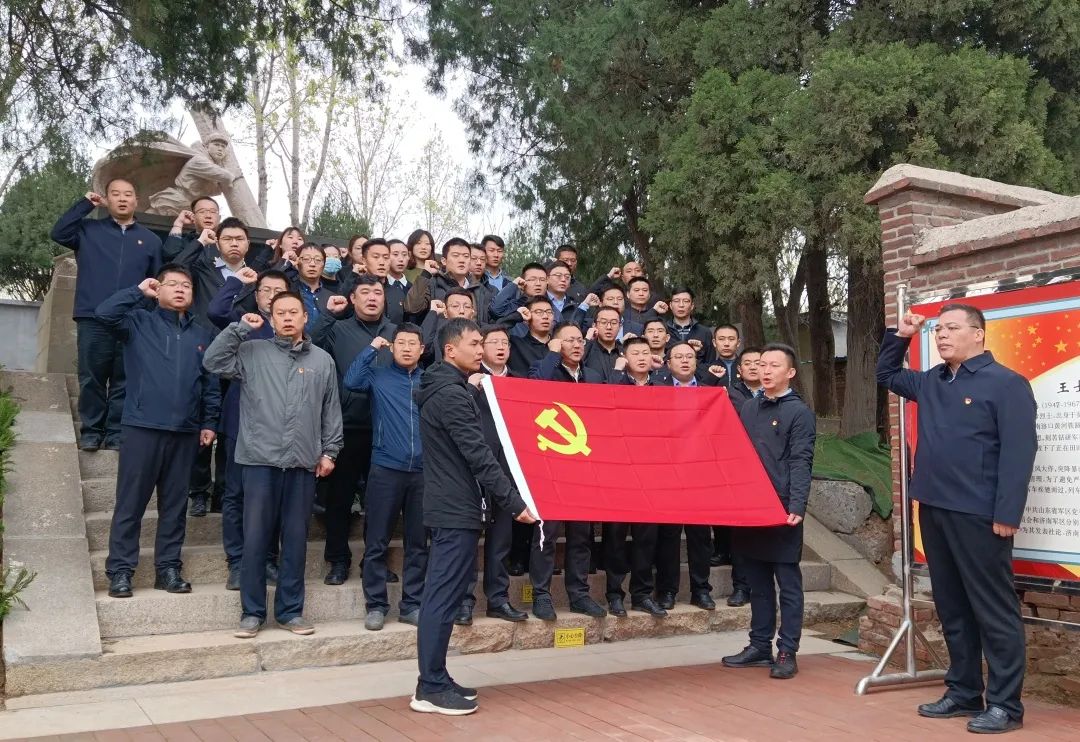 活動(dòng)中,黨員代表向王士棟烈士敬獻(xiàn)花籃,黨員們瞻仰烈士紀(jì)念碑、深情緬懷烈士功績(jī)、寄托哀思并在中國(guó)共產(chǎn)黨黨旗的見證下,重溫入黨誓詞。