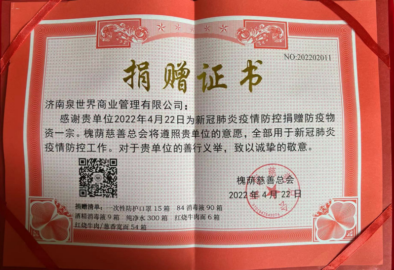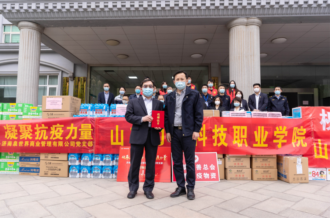 此次活動(dòng),濟(jì)南泉世界商業(yè)管理有限公司黨支部積極組織干部職工向槐蔭區(qū)住建局、槐蔭區(qū)城管局、槐蔭區(qū)交警大隊(duì)捐贈(zèng)口罩、84消毒液、消毒酒精、礦泉水、方便面等防疫用品和生活物資,同時(shí)對(duì)一線工作者表示敬意。