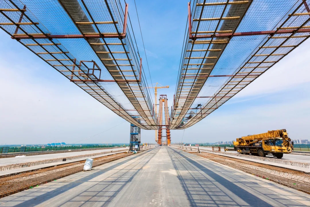 世界橋面最寬的特大鋼箱梁橋。項(xiàng)目按照雙向8車道一級公路標(biāo)準(zhǔn)建設(shè),跨黃段橋梁范圍為公軌合建的橋梁形式,中間預(yù)留城市軌道交通空間,同時(shí)兩側(cè)設(shè)置跨河慢行通道,鋼箱梁全寬61.7米,是世界橋面最寬的特大鋼箱梁橋。
