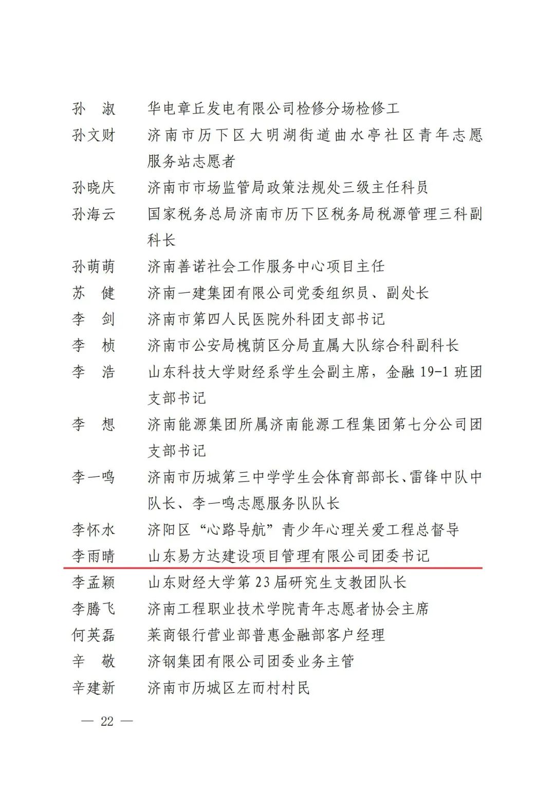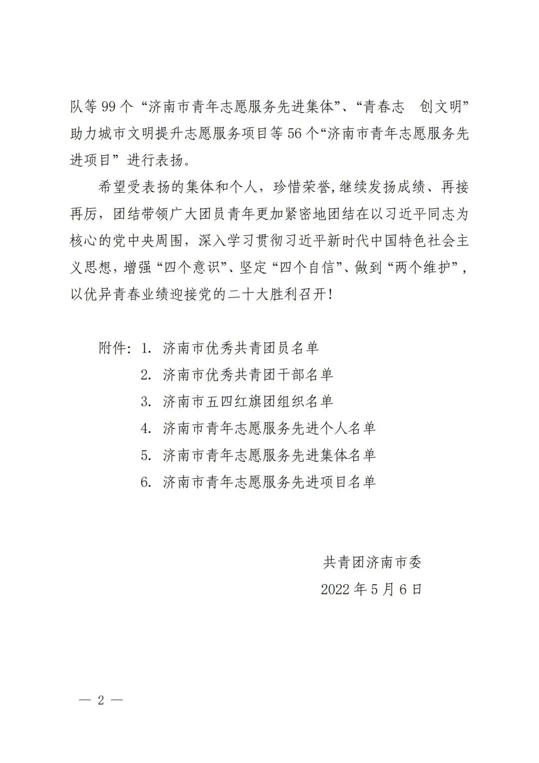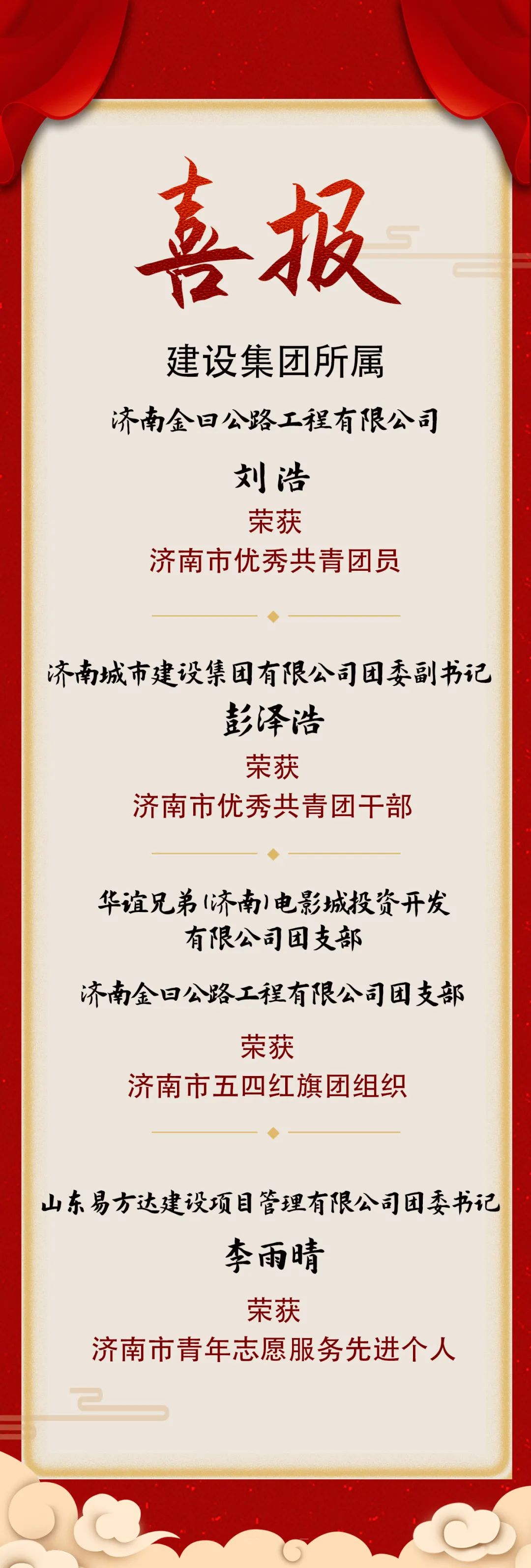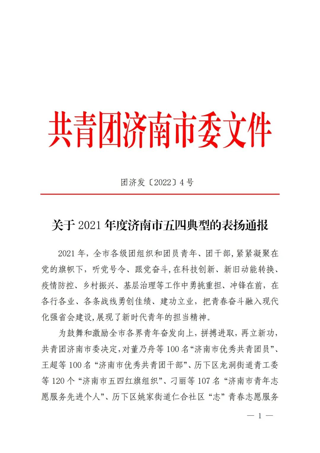 近日,共青團(tuán)濟(jì)南市委公布了《關(guān)于2021年度濟(jì)南市五四出彩典型的表?yè)P(yáng)通報(bào)》,建設(shè)集團(tuán)團(tuán)委所屬團(tuán)組織及團(tuán)員青年榮獲“濟(jì)南市五四紅旗團(tuán)組織”“濟(jì)南市青年志愿服務(wù)先進(jìn)個(gè)人”“濟(jì)南市優(yōu)秀共青團(tuán)員”“濟(jì)南市優(yōu)秀共青團(tuán)干部”等4項(xiàng)榮譽(yù)稱號(hào)。