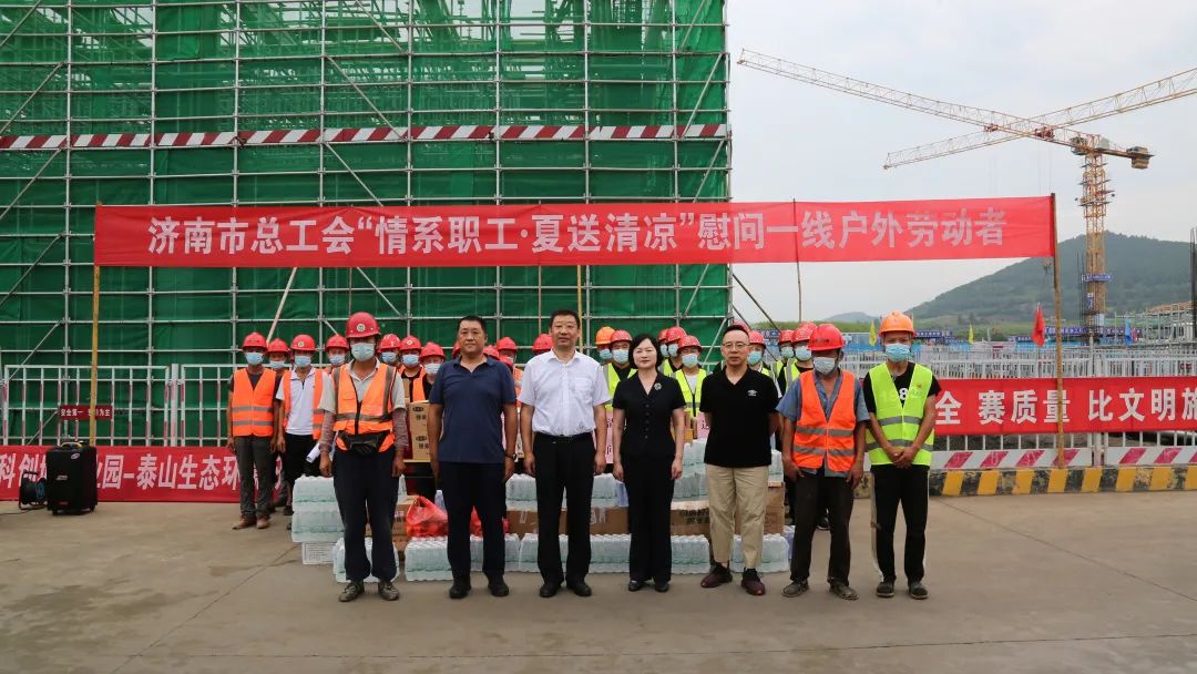 8月12日上午,濟南市總工會副主席申世平帶隊到中科院濟南科創(chuàng)城產(chǎn)業(yè)園項目現(xiàn)場,為一線職工送去防暑降溫物品,慰問一線建設(shè)者,市總工會宣教部二級調(diào)研員張昭力,建設(shè)集團黨委副書記鐘善良,集團工會相關(guān)負責(zé)同志參加活動。