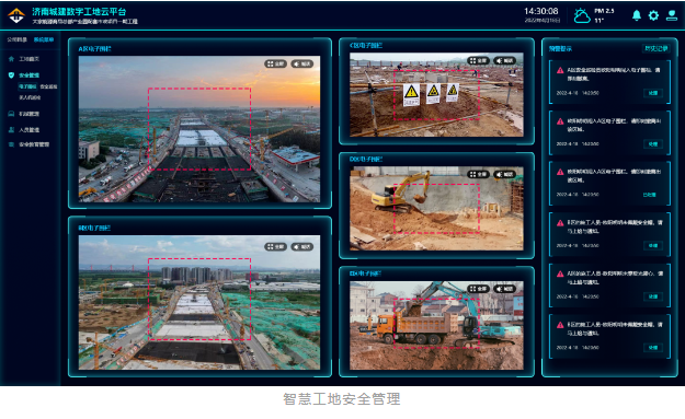 目前,城建集團公司結合工程一線施工實際,聯(lián)合百度開發(fā)智慧工地管理系統(tǒng),其中AI邊緣計算盒子可通過訓練模型等方式智能識別發(fā)現(xiàn)問題,自動報警反饋推送至相關人員,形成全方位、多層次、無死角監(jiān)控預警,從原來的“人找事”轉變?yōu)?ldquo;事找人”,進入“智慧”工地管理階段。